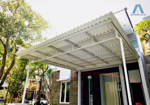 Bahan atap Polycabonate merupakan jenis yang paling banyak dipilih di pasaran. Atap ini bersifat meredam panas matahari sehingga area dibawahnya menjadi lebih teduh dan sejuk. Selain fungsi dan manfaatnya tersebut, kanopi polycarbonate juga mampu memberi kesan minimalis dan modern terhadap rumahmu. Variannya yang banyak menjadi kelebihan tersendiri agar lebih mudah dipilih sesuai kebutuhan,konsep, dan desain rumah idamanmu.