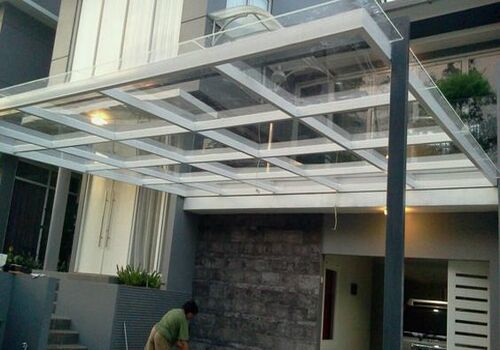 Ingin rumah tampil lebih bersih dan bergaya? Gunakan kanopi berbahan kaca. Memang terhitung jarang digunakan sebab harga yang ditawarkan cukup mahal. Namun hasil yang didapatkan tentu sepadan dengan uang yang harus dirogoh agak dalam. Umumnya ada 2 jenis kaca yang dipakai yaitu kaca bening dan kaca buram. Pastikan untuk memilih dan menggunakan sesuai kebutuhan, ya!